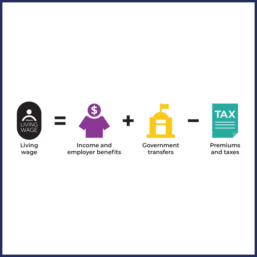 The living wage is defined as the hourly wage a worker needs to earn to cover their basic expenses and have a modest standard of living once government transfers have been added and taxes have been subtracted. The calculation is based on the income needs of three household types: a two-parent family with two young children; a lone-parent family with one child; and a single individual. It assumes that each adult is working full-time hours and includes savings for unexpected costs, continuing education, child care, and a small amount which allows people to participate in the community.